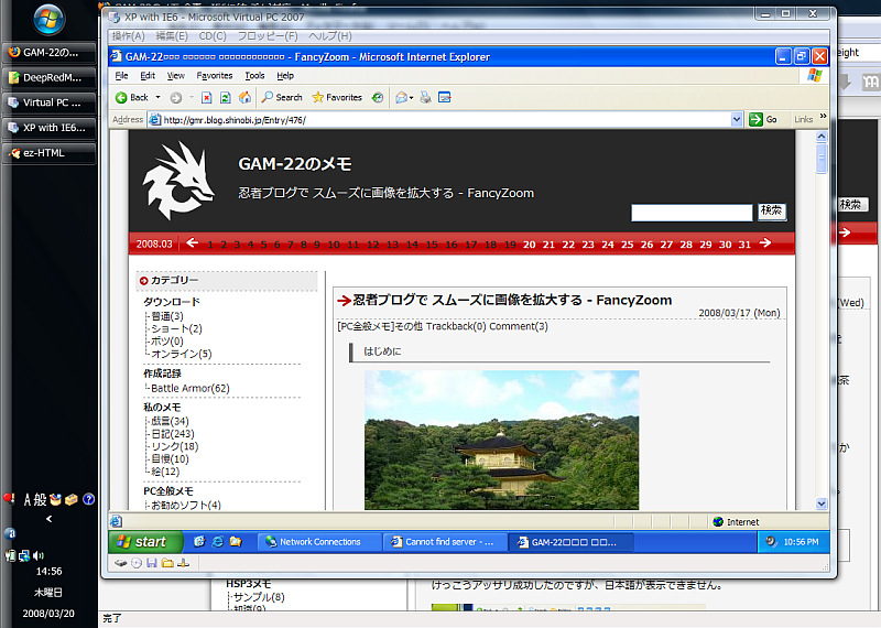 とりあえず、私のマシンはVistaです。IE7との共存も、ダウングレードもできないので、IE6からどう見えるか分かりません。途方に暮れていたら、こんな情報を入手。