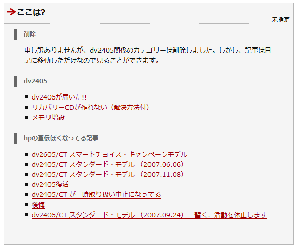 こんな感じです。忍者ブログでは削除したカテゴリーのページも生成されるので、普通に解説を付けただけです。