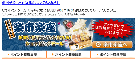 1ヵ月前に復活したと思ったら、忍者ポイントゲームが終了です。