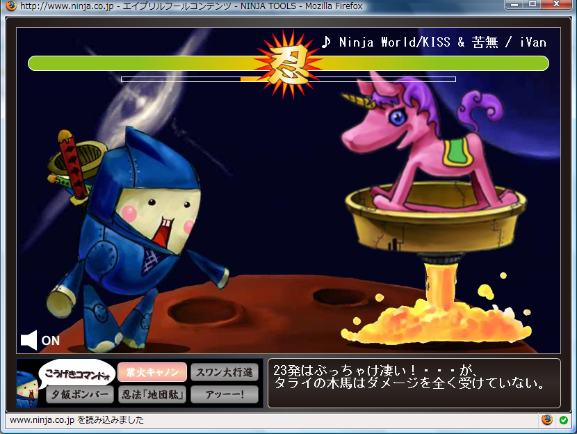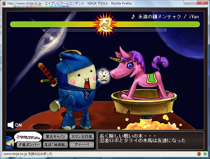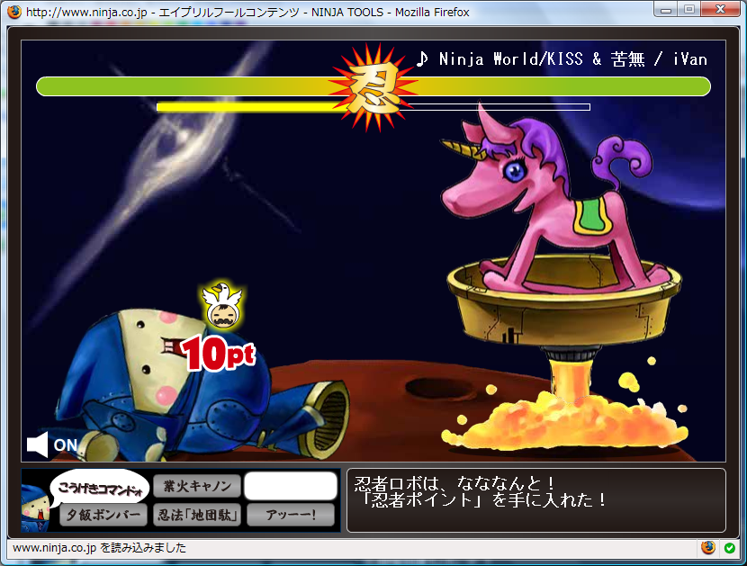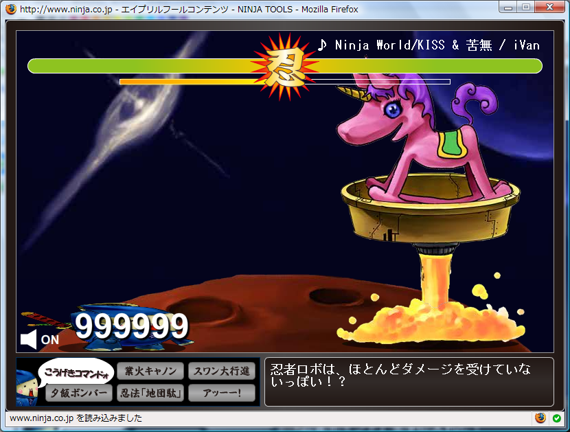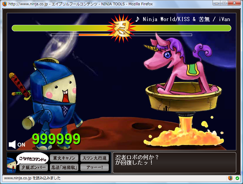 本日、NINJA TOOLSにアクセスすると、「忍者ロボ」が遊べるようです。