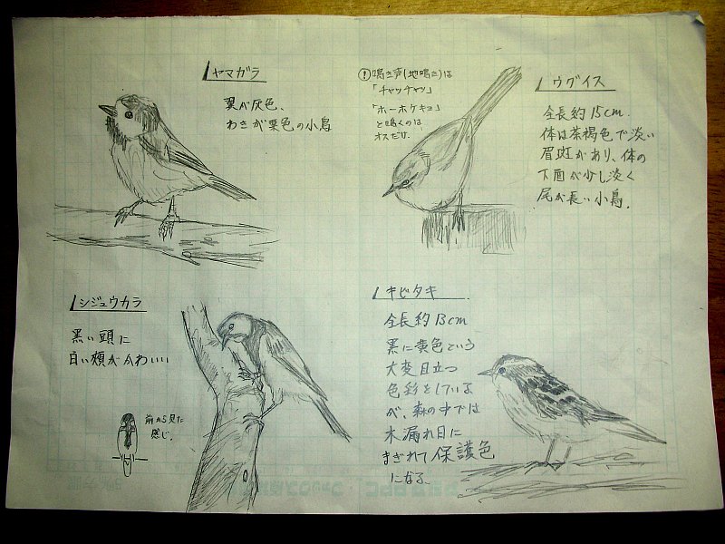 鉛筆画だと分かりませんが、カケスは綺麗な色をしています。