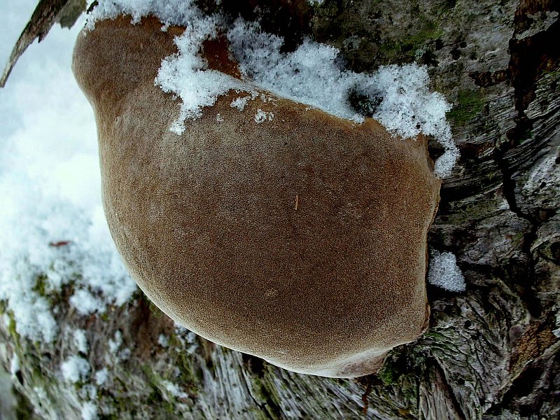 登る途中、木の幹に付く謎の物体を発見しました。大きさは2,30cmくらいあり、始めは巨大な粘菌の塊とか思っていましたが、思い切りスットクで突いてもキズが付く程度の強度で、今では本当に粘菌だったのか疑問です。なんですかね、これは?