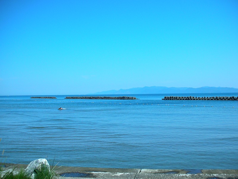 東北なのでちと寒かったのですが、もちろん海水浴に行きました。青いですね。