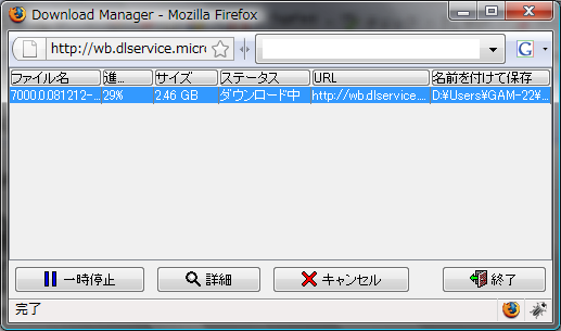 2.45GBもあるファイルなので、ActiveXダウンローダーからダウンロードします。一時停止も可能で、なかなか気が利くと思いました。平日の夕方の時間帯のせいか、20分でダウンロードが終わりました。