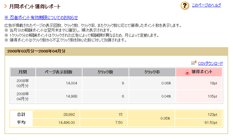 今日の15時半頃、忍者アドの報酬が確定したらしいです。結果はこんな感じです。