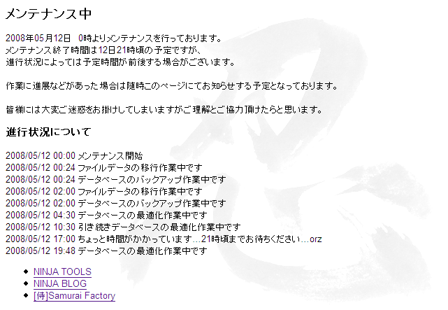 本日0時から行われた、忍者ブログのメンテナスが原因です。一体どのようなものか説明します。次は、私も含む忍者ブログの管理者に送られたメールの一部です。