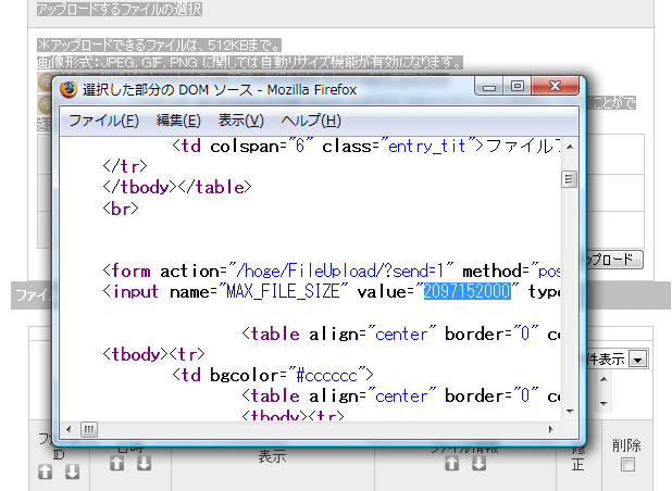 MAX_FILE_SIZE というのは、こんな感じのものだったみたいです。